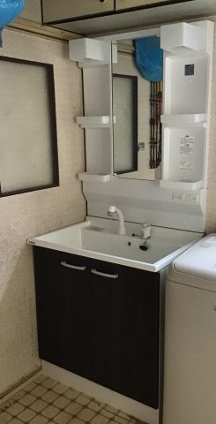 現地調査にお伺いした所、洗面化粧台の電気の部分が、