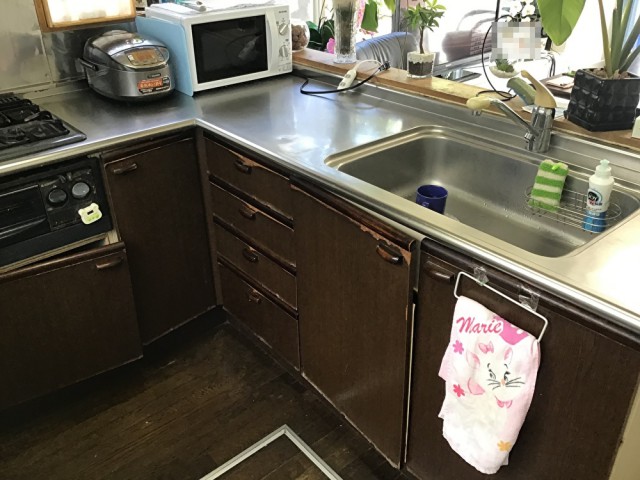 キッチンが古くなり扉が閉まらない状態でした。