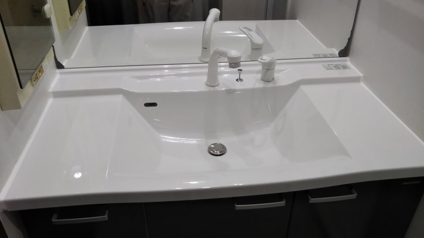 壁と床の内装を先に工事をして、化粧台設置は後に工事致しました。