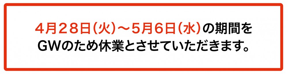 4月27日(月)は社内行事のため終日臨時休業とさせていただきます。