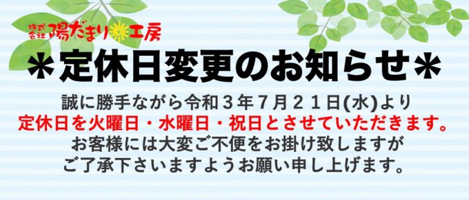 定休日を一部変更させていただきます。