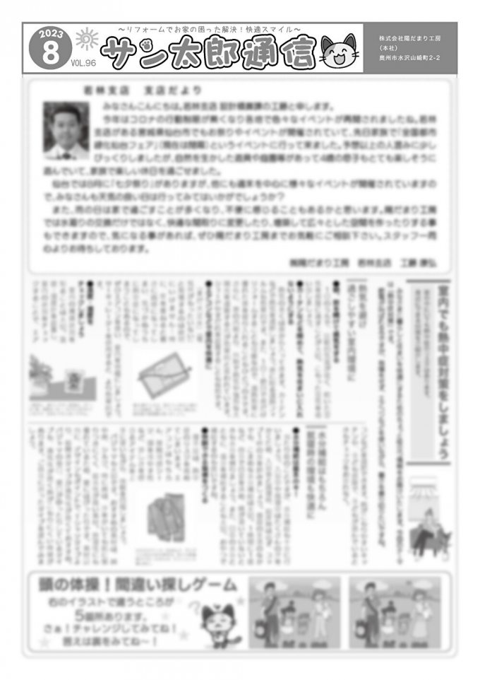 サン太郎通信8月号をカタログページに掲載しました! 会員登録(無料)をしていただくことでHPから誰でもご覧いただけます!