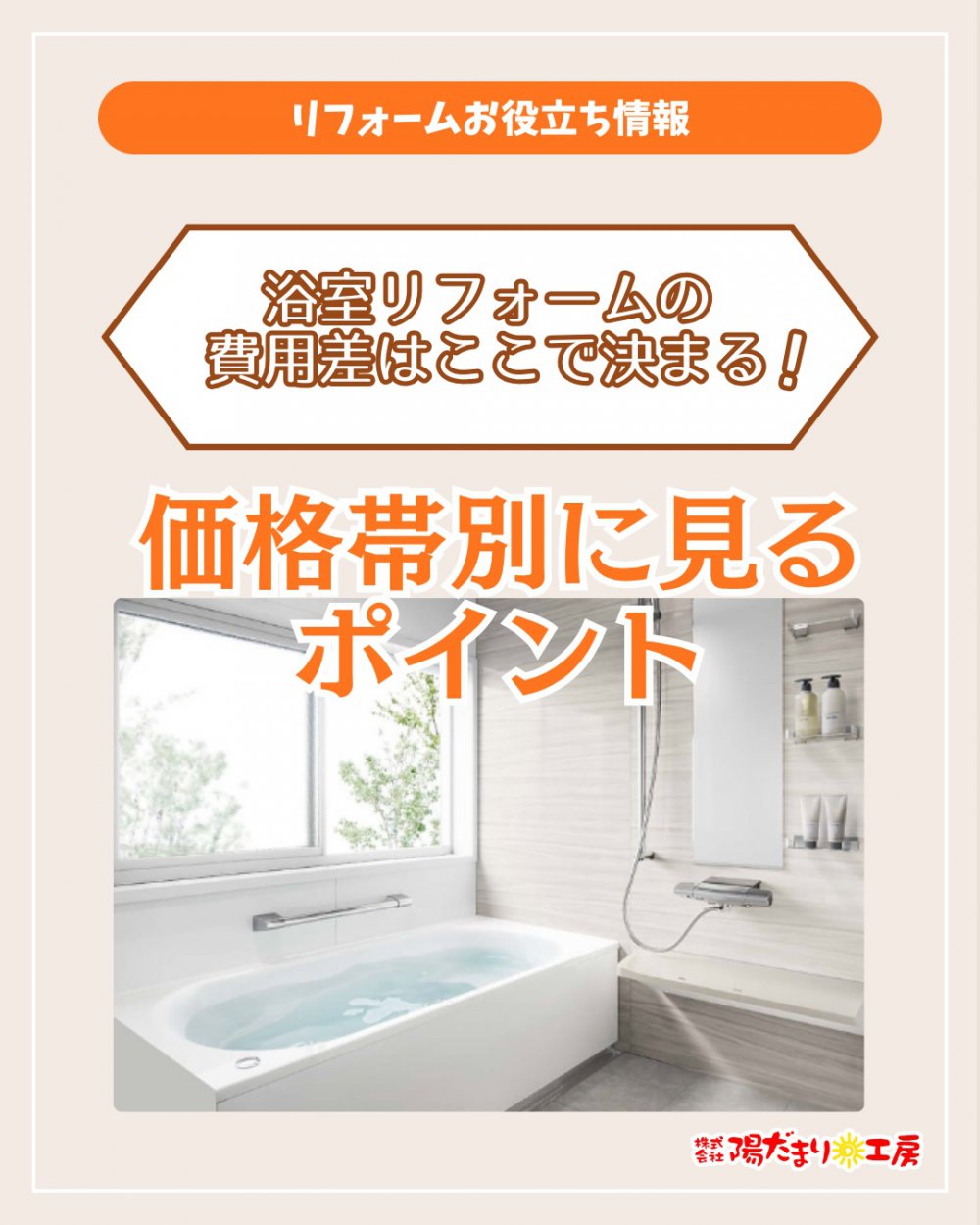【浴室コラム】浴室リフォームの費用差はここで決まる!価格帯別に見るポイントは?